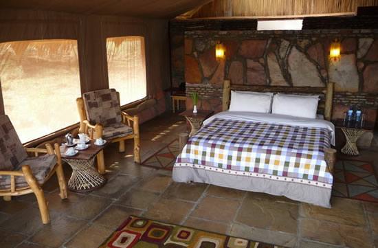 Après le petit déjeuner, départ pour le lac Baringo. Pique-nique au parc de Bogoria pour admirer les flamants roses et les pélicans. Vers 14h00 départ pour le lac Baringo et observation de geysers. Installation au Robertson Camp, puis départ pour une balade en bateau. Nuit en tentes pré-montées au camp.